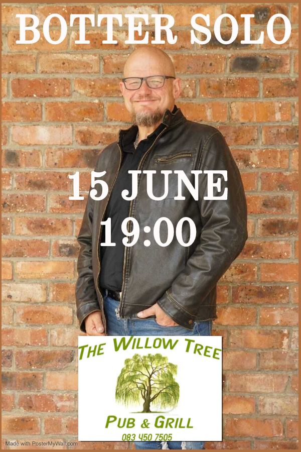 Botter Solo Performing Live at The Willow Tree Pub & Grill When: Saturday 15 June 2024 Time: 19h00 Tel: 083 450 7505 Contact Us for More info: Your name Your email Subject Your message (optional) June 15 @ 19:00 19:00 — 22:00 (3h) The Willow Tree Pub & Grill Botter Solo Download iCal Event